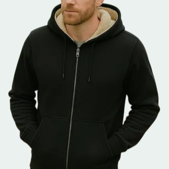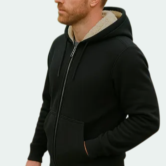 羊羔絨衛衣男加絨黑色外套大尺碼寬鬆拉鍊連帽